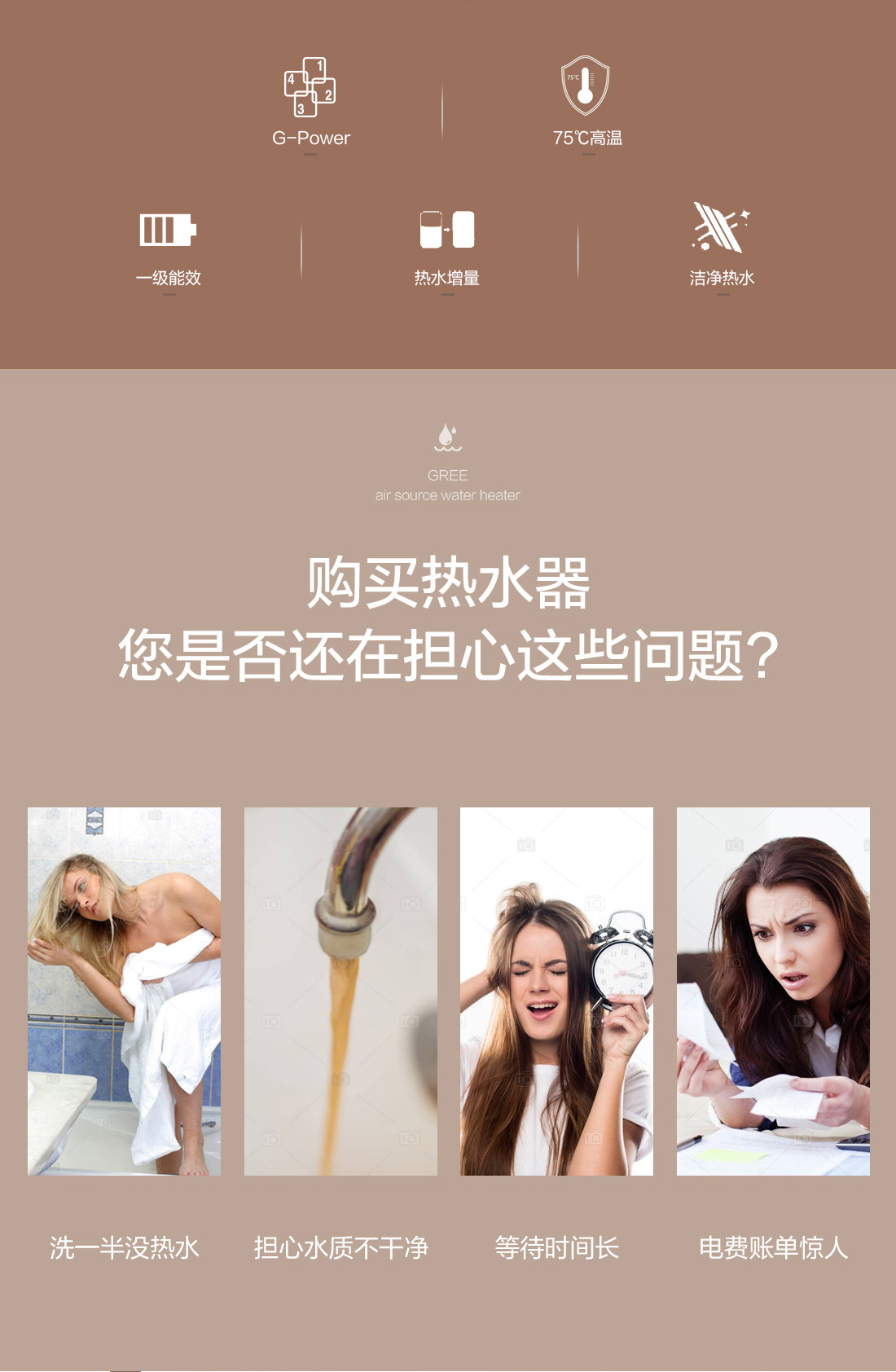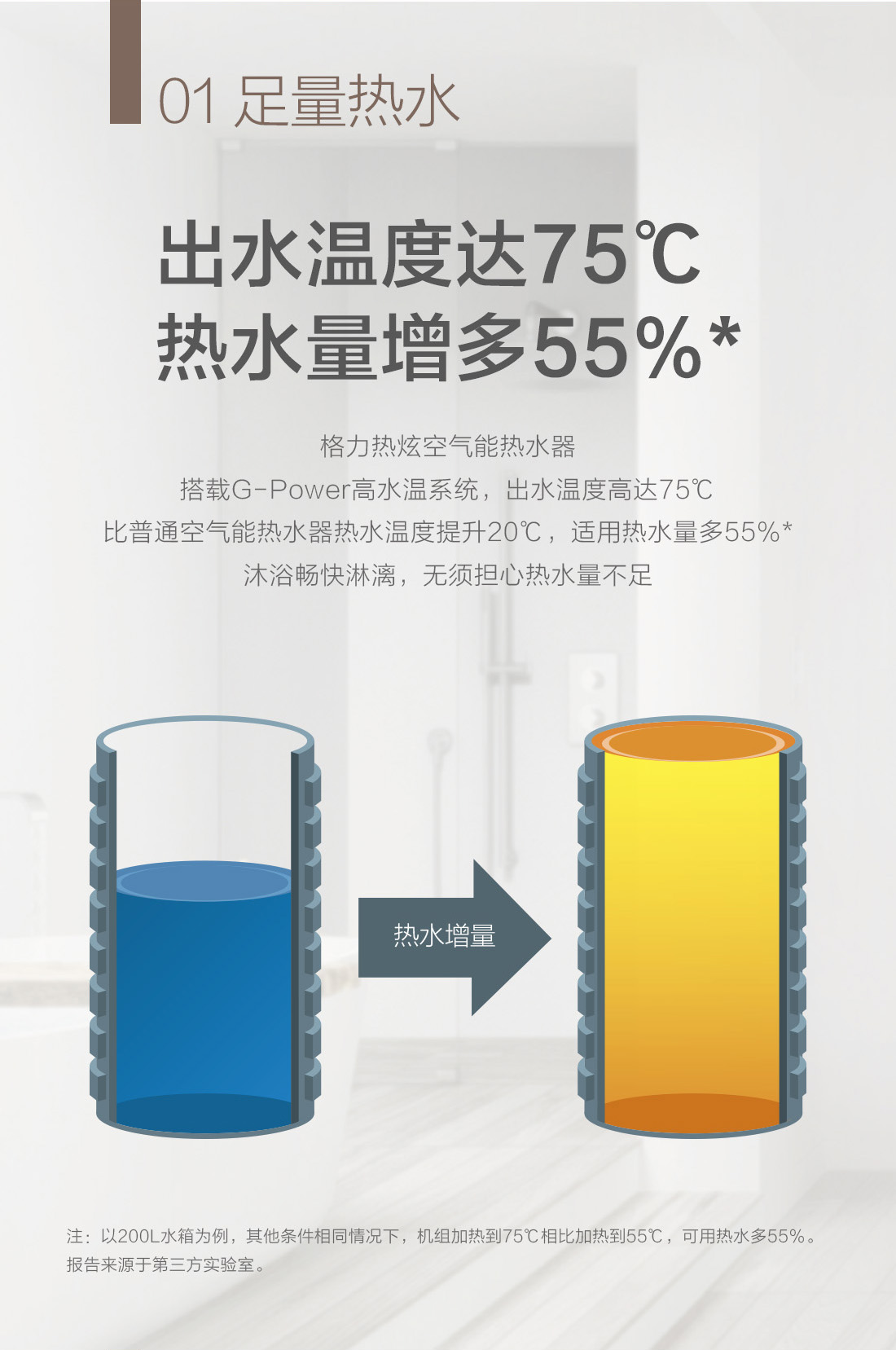 高溫大水量,沐浴暢快享,搭載G-power高水溫系統(tǒng),成就水溫更高,水量更大的空氣能熱水器,更達1級能效,省電高達75%,全家人暢快享受的沐浴選擇。